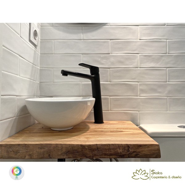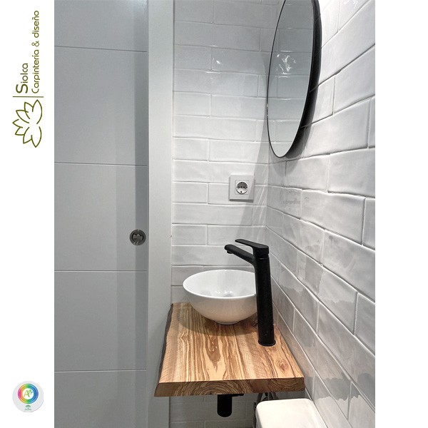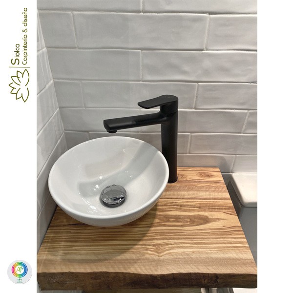 • Madera de olivo con veta y posibles nudos tratados y tapados para evitar que penetre la humedad en la encimera.